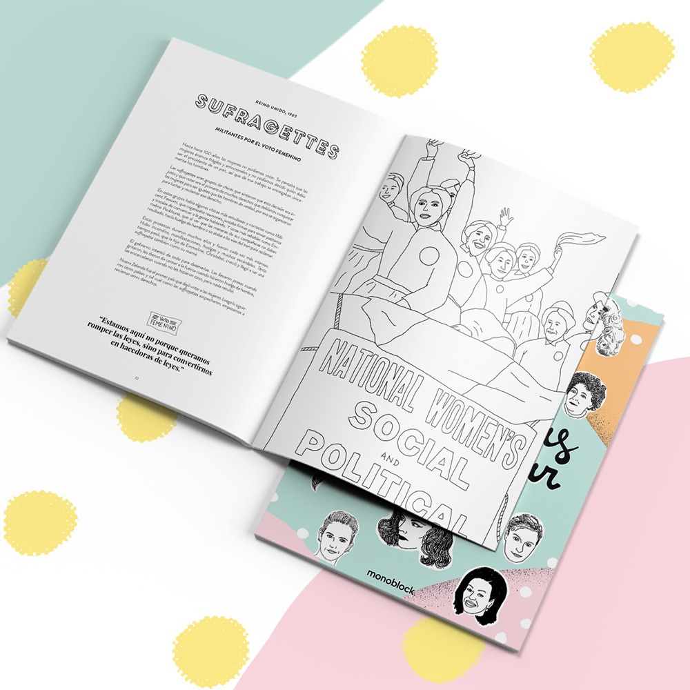 Ilustración digital para libro infantil “Feministas para colorear” Monoblock, 2017.